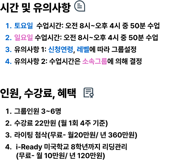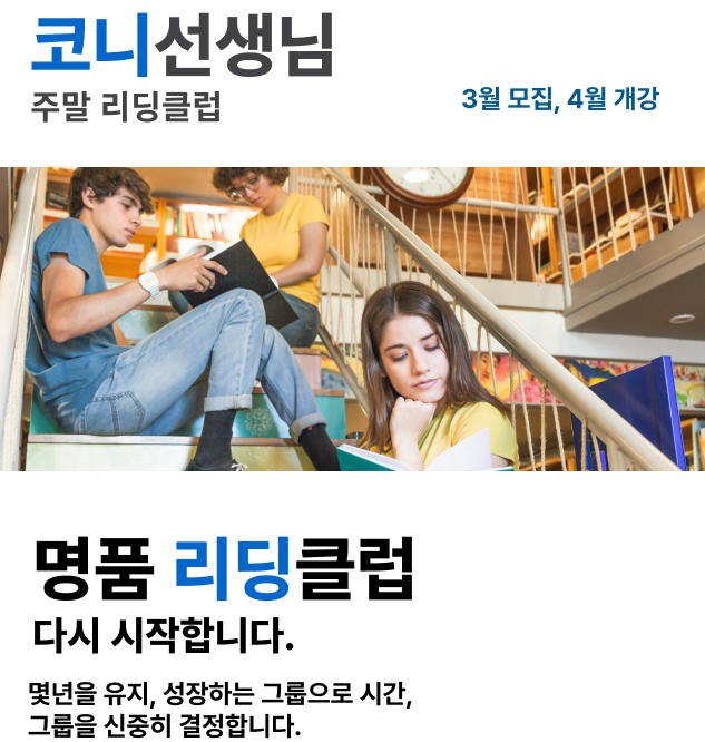리딩클럽반 모집 개강일자 2024년 4월 6일, 7일 밍품 리딩클럽 그룹수업 전화문의: (02)596-4908
